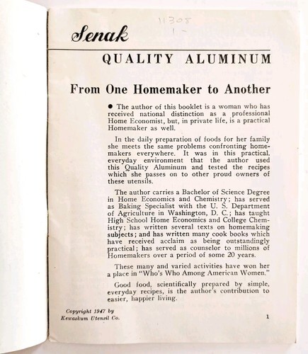 - Senak Company Quality Aluminum Ware 1947 Recipe Booklet Advertisement Promo E3