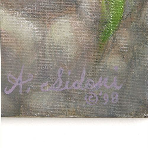 Nato a Buffalo, New York, Anthony Sidoni (1919-2012) era un artista autodidatta con un talento naturale straordinario. Ha iniziato disegnando ritratti da bambino e la sua abilita e stata presto riconosciuta dal famoso artista petrolifero italiano, Tony Sisti, che ha dato ad Anthony diverse lezioni durante la lezione di pittura della comunita locale. Alla fine degli anni '60, Anthony espose arte in una mostra d'arte insieme al famoso artista Julian Ritter e in seguito ricevette il suo primo spettacolo da solo nella Galleria di Jane Freeman. Fu dopo questo che Anthony ottenne un vasto riconoscimento internazionale. Ha vissuto e dipinto a West Hollywood, in California, ed e stato votato "Artist of the Year" nel 2000 e nel 2001. (Fonte:Qart.com) Sia che tu stia cercando di acquistare articol