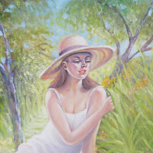 Senza titolo (Donna che riposa sul muro di pietra) Dipinto ad olio di Anthony Sidoni