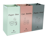 SET of 3 bags in different colors for perfect sorting and recycling waste, separate it conveniently for PAPER BOX, CAN BOTTLE, PLASTIC VINYL.