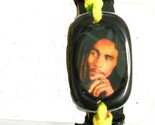 - SERIOUS BOB MARLEY PORTRAIT INLAY ACRYLIC MEDALION BLACK LEATHER ADJ BRACELET