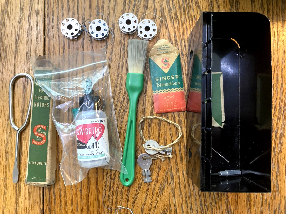 - Serviced 1956 Singer 222K Featherweight Sewing Machine, Case, Extras, Beautiful