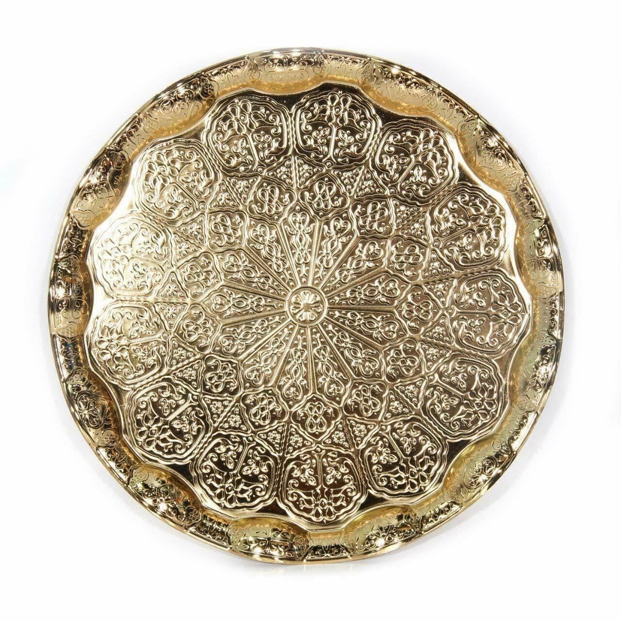 - Serving Tray Turkish Ottoman Coffee Tea Zamak Antique Vintage Style Dia.35cm