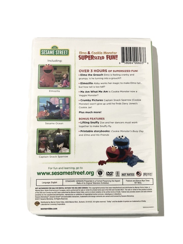 - Sesame Street Elmo and Cookie Monster Supersized Fun DVD Movie TV Factory SEALED