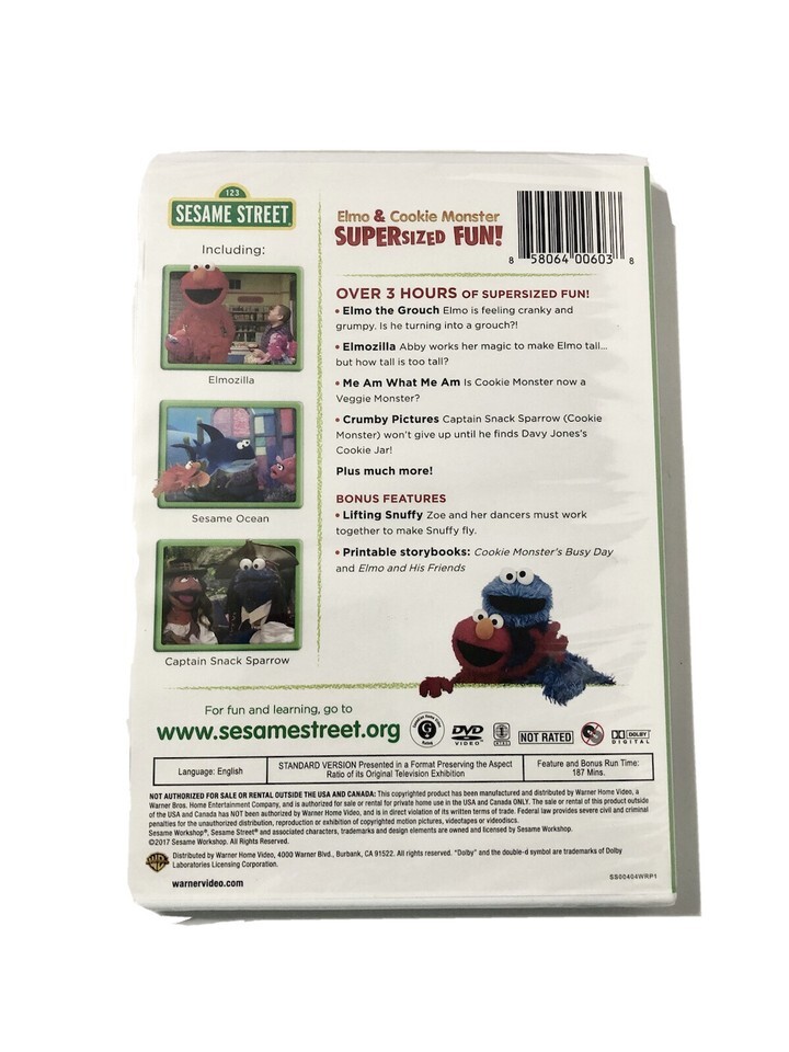 Sesame Street Elmo and Cookie Monster Supersized Fun DVD Movie TV Factory SEALED. Condition is "Brand New".