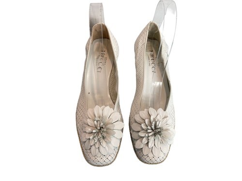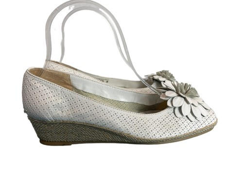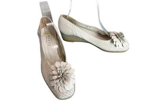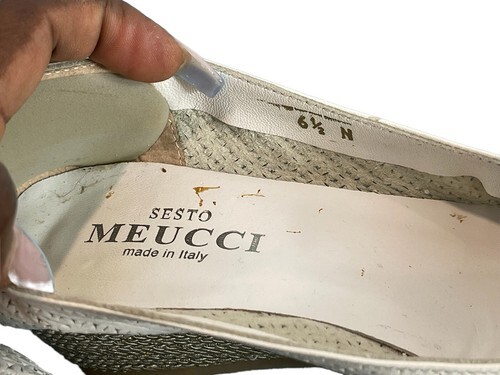 - Sesto Meucci Espadrille Women 6.5N Shoes White leather Slipon Wedge Heels Pumps