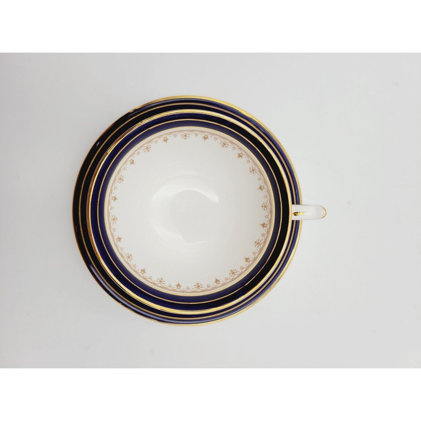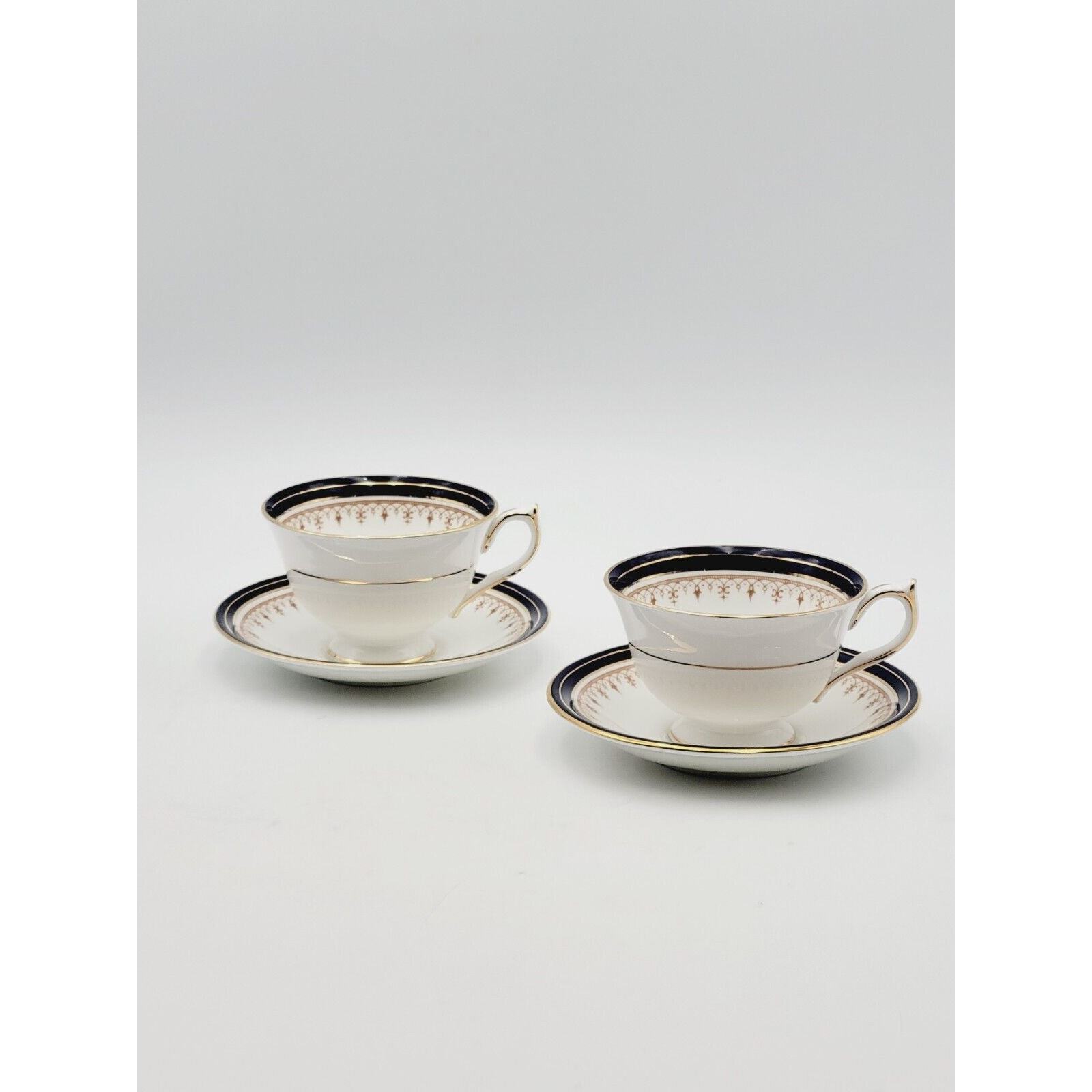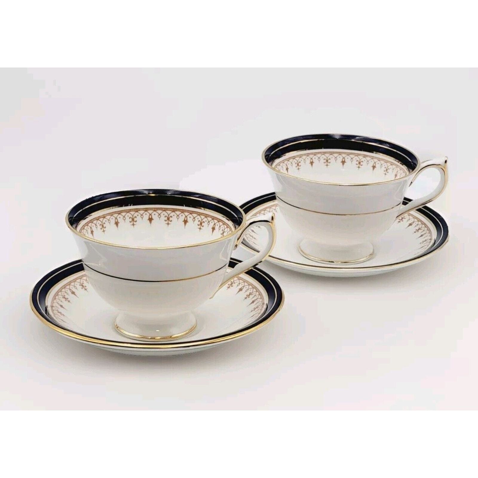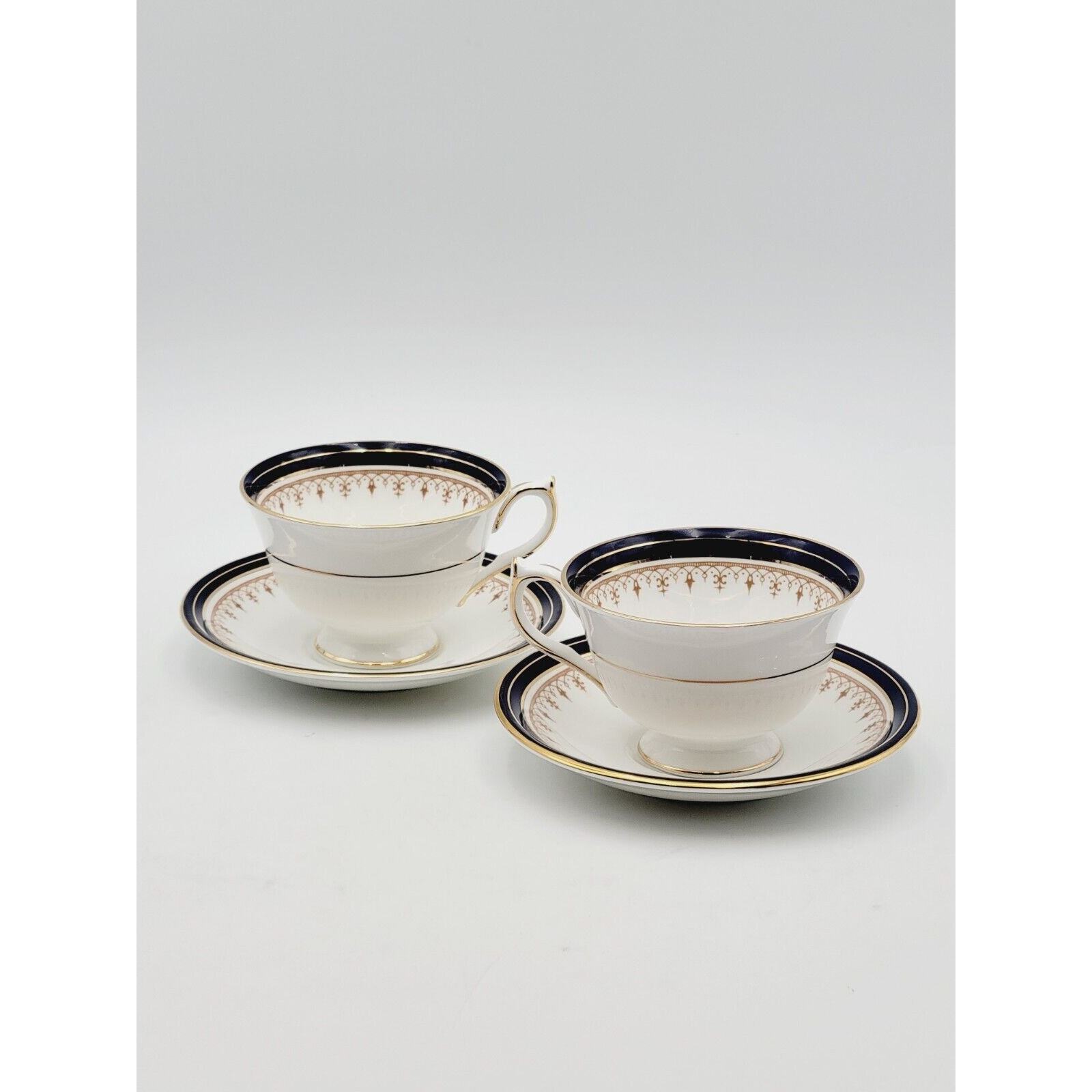 - Set 2 Aynsley Leighton Cobalt Gold Footed Cup & Saucer English Bone China 1646