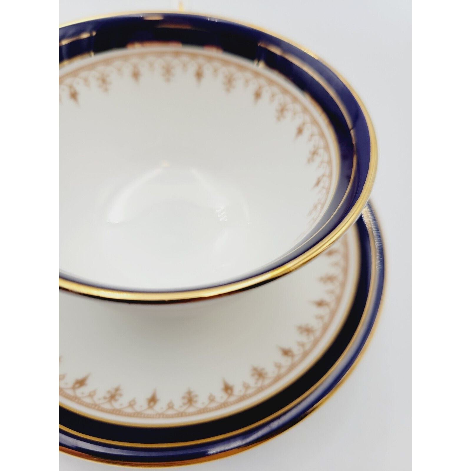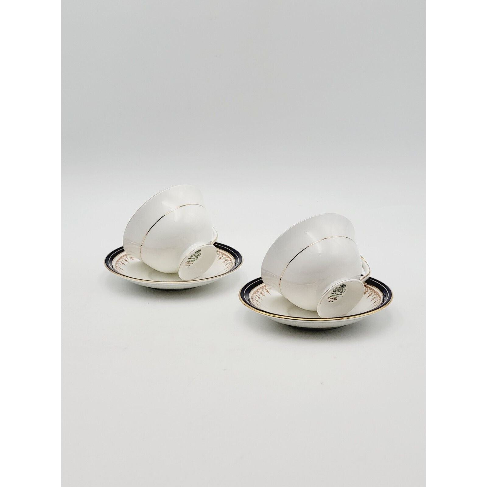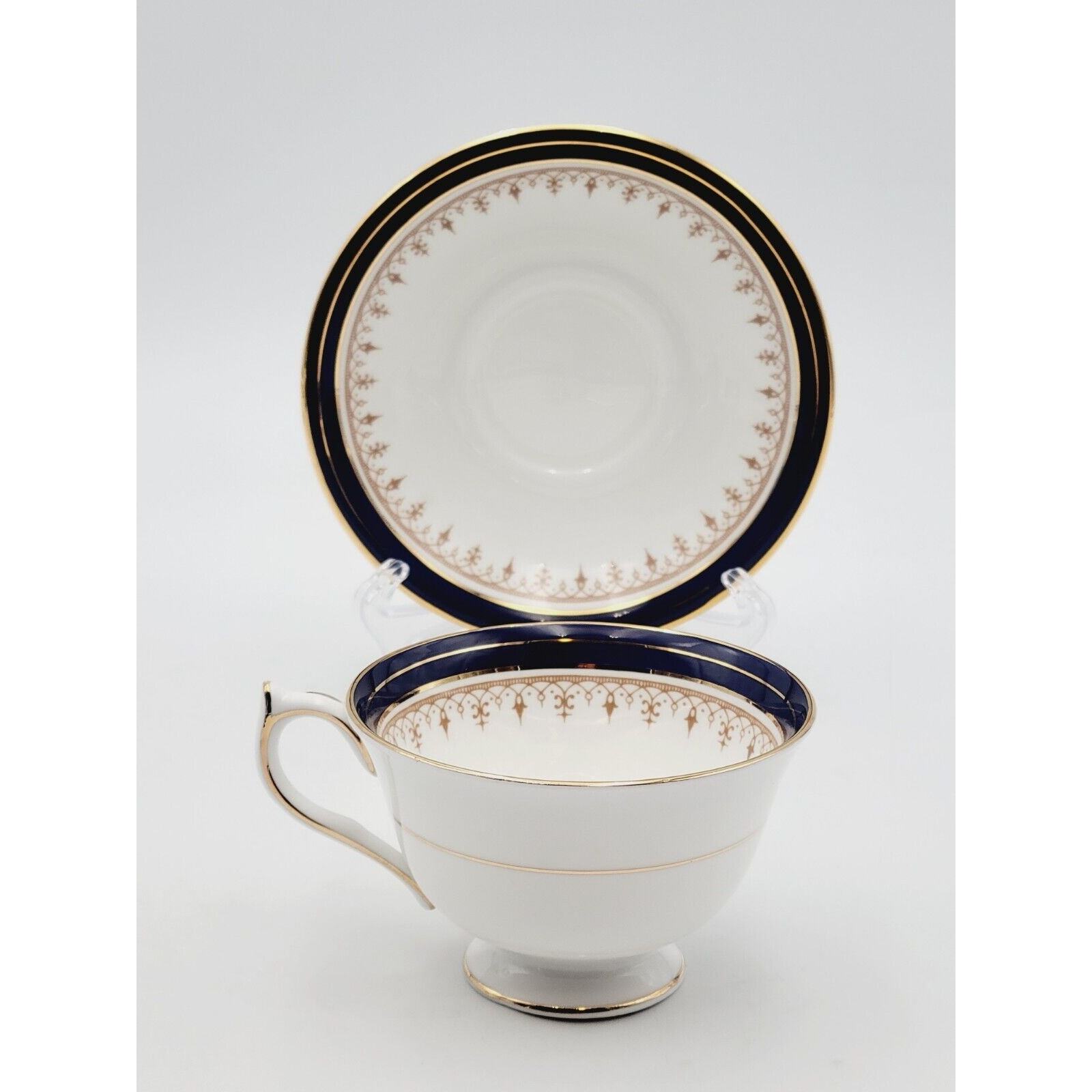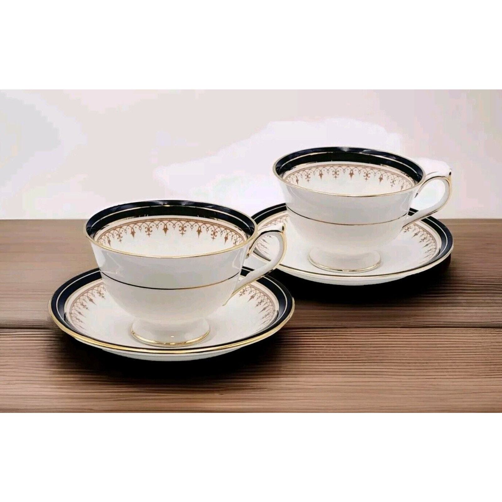 - Set 2 Aynsley Leighton Cobalt Gold Footed Cup & Saucer English Bone China 1646