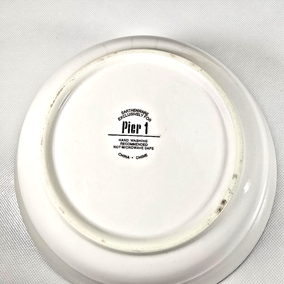 This set of two Pier 1 pasta or soup bowls features the vibrant ?Inspired By Tuscany? pattern, hand-painted with olives, garlic, and rustic detailing. These ceramic bowls bring Mediterranean warmth to any table setting or collection.