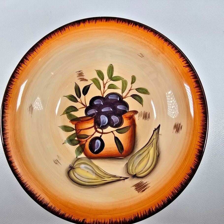 - Set 2 Pier 1 Inspired By Tuscany Hand Painted Pasta Soup Bowls Olive Garlic