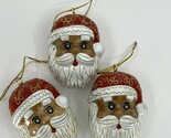 Set 3 Cloisonné Santa Face Christmas Ornaments Gold Tone Traditional Style