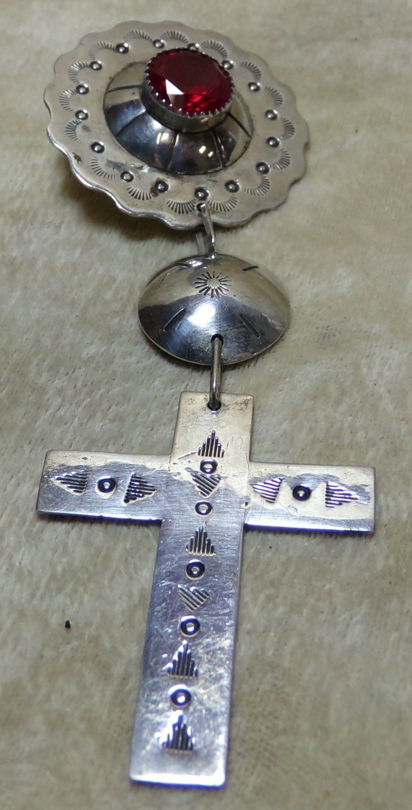 - Set 4 Native American Sterling Silver Cross Pin Brooch Concho S Bear Paw L 69g