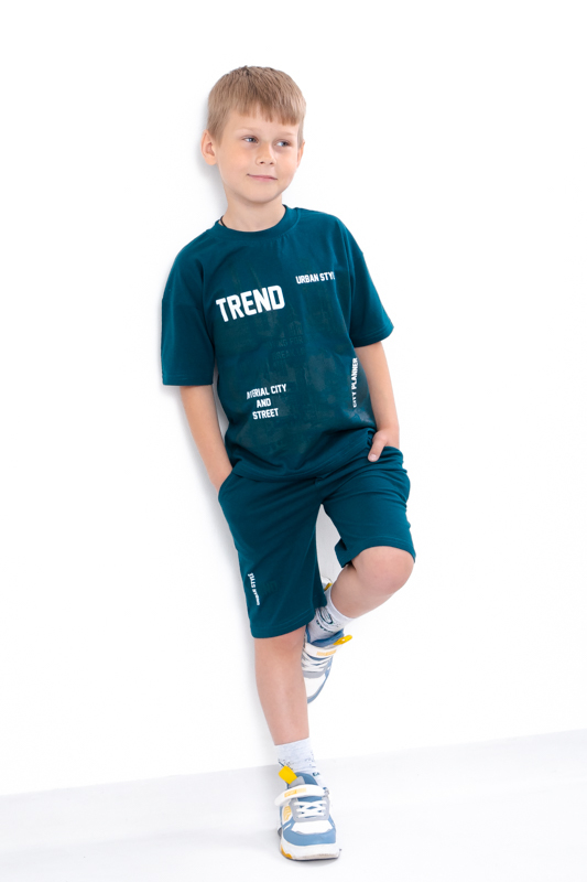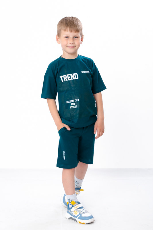 Boys? set (T-shirt + shorts) made from cotton jersey ? the perfect choice for summer. The lightweight, breathable 100% cotton T-shirt with a print features a straight cut, short sleeves, and a rounded neckline, providing comfort and freedom of movement. The shorts have a relaxed fit with an elastic waistband and side pockets for added convenience. Stylish prints on the T-shirt and shorts create a harmonious look. This set is suitable for walks, active play, and everyday wear. Practicality and trendy design for confident boys.
