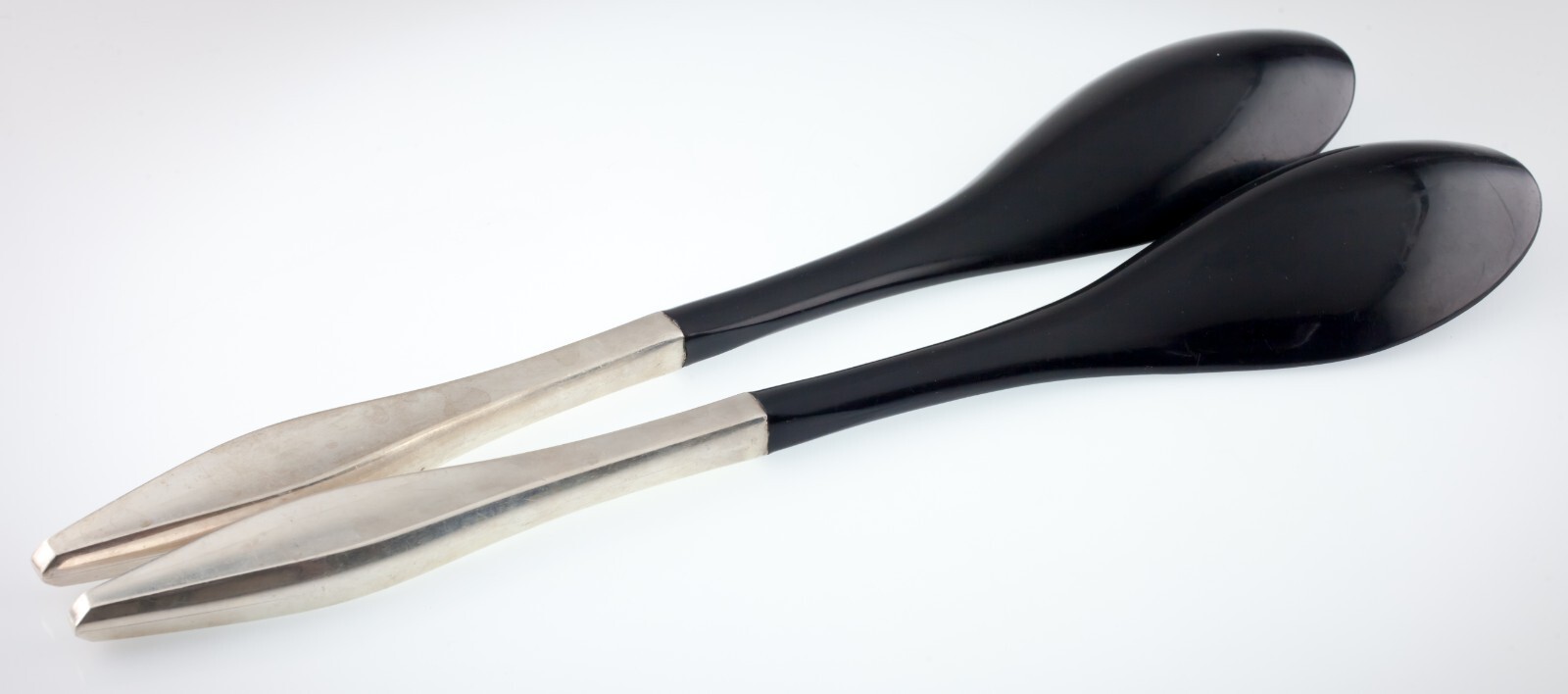 Set von 2 Sterling Silber -Griff -Salat -Wurf- und Servierutensilien