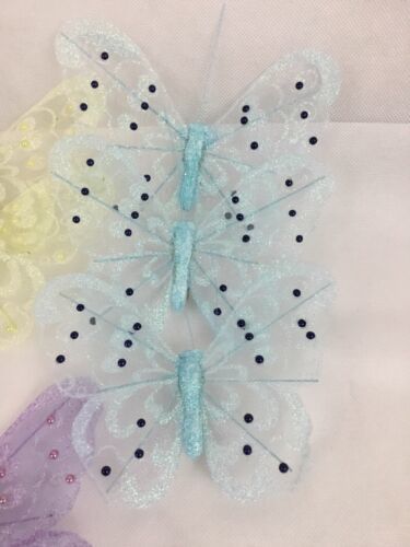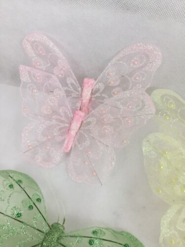- Set Of 13 Glitter 5 Inch Wide Butterflies Clip On Pastel Colors & Applied Beads