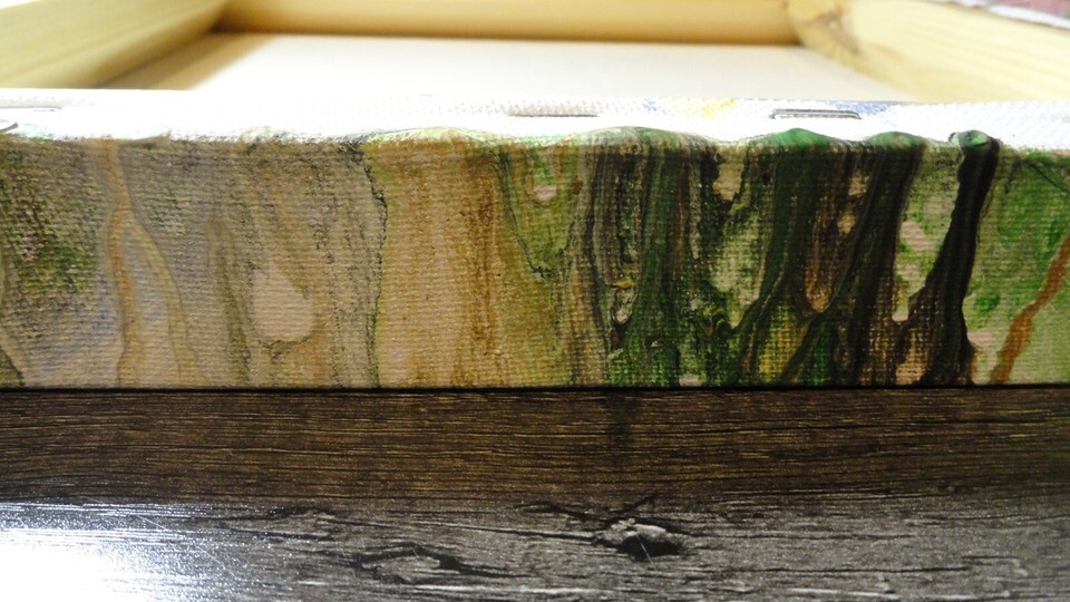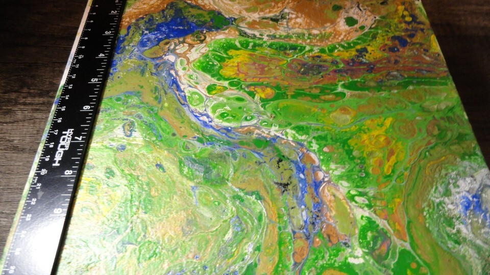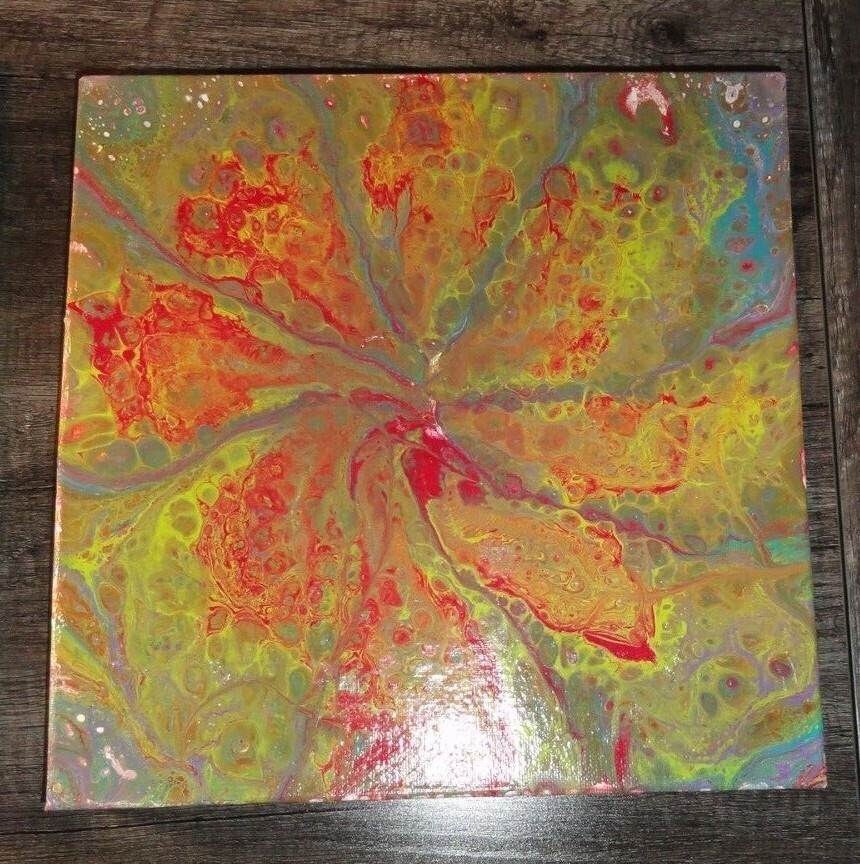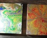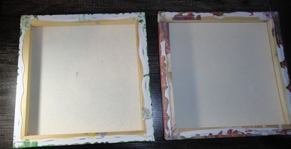 - SET OF 2 ABSTRACT CANVAS PAINTINGS BOTH PIECES ARE 12" X 12" X 1.5" THICK
