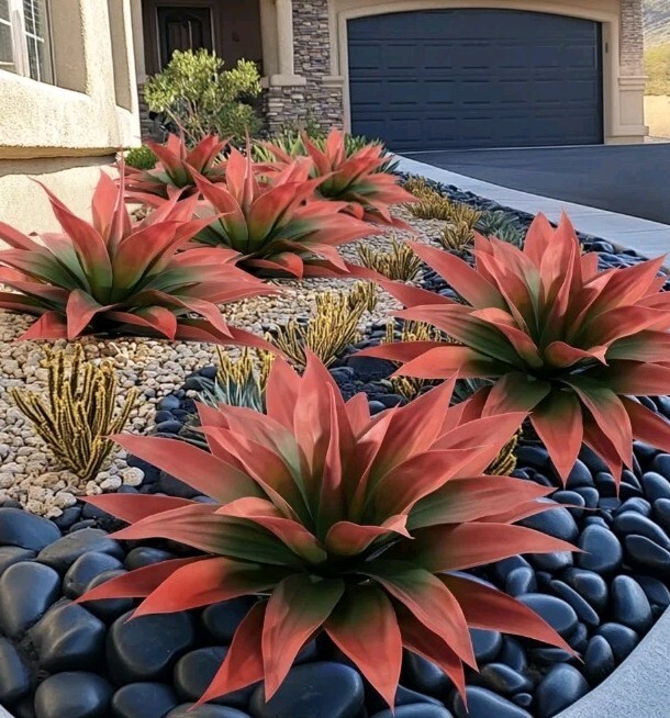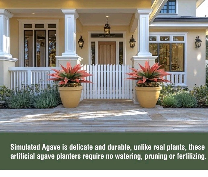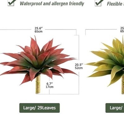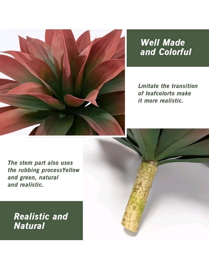 Artificial Agave Plants. Set of 2. Large. UV Resistant Fake Agave Planters for Indoor and Outdoor Decorating. 2Pack, 28" Red