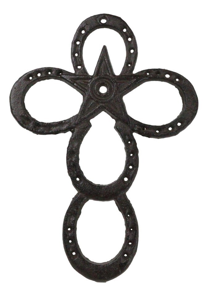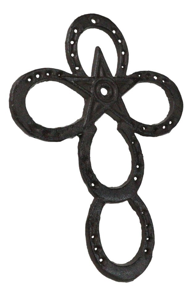 - Set Of 2 Cast Iron Rustic Western Horseshoes And Lone Star Christian Wall Cross