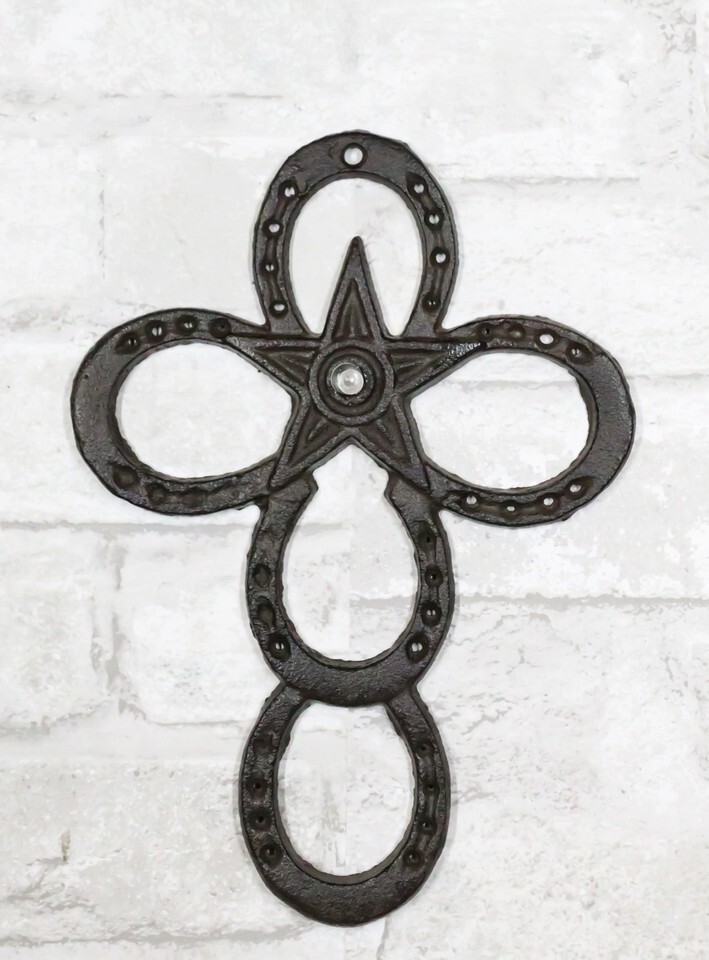? Add a touch of rustic charm to your home with our Rustic Western Cast Iron Lucky Horseshoes with Lone Star Wall Cross. This unique piece beautifully combines the symbolism of luck and the iconic lone star, making it a perfect accent for Western-themed decor. Crafted from durable cast iron, it offers a sturdy and timeless look that complements any wall. Ideal for entryways, living rooms, or as a meaningful gift, this wall cross brings a sense of warmth and character to your space!