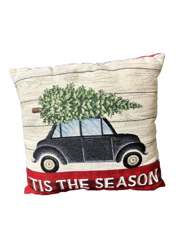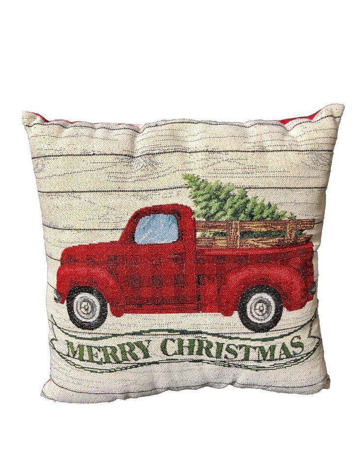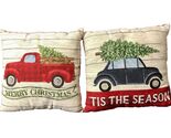 - Set Of 2 Christmas Tapestry Throw Pillows Red Truck 15” Tree Accent Holiday