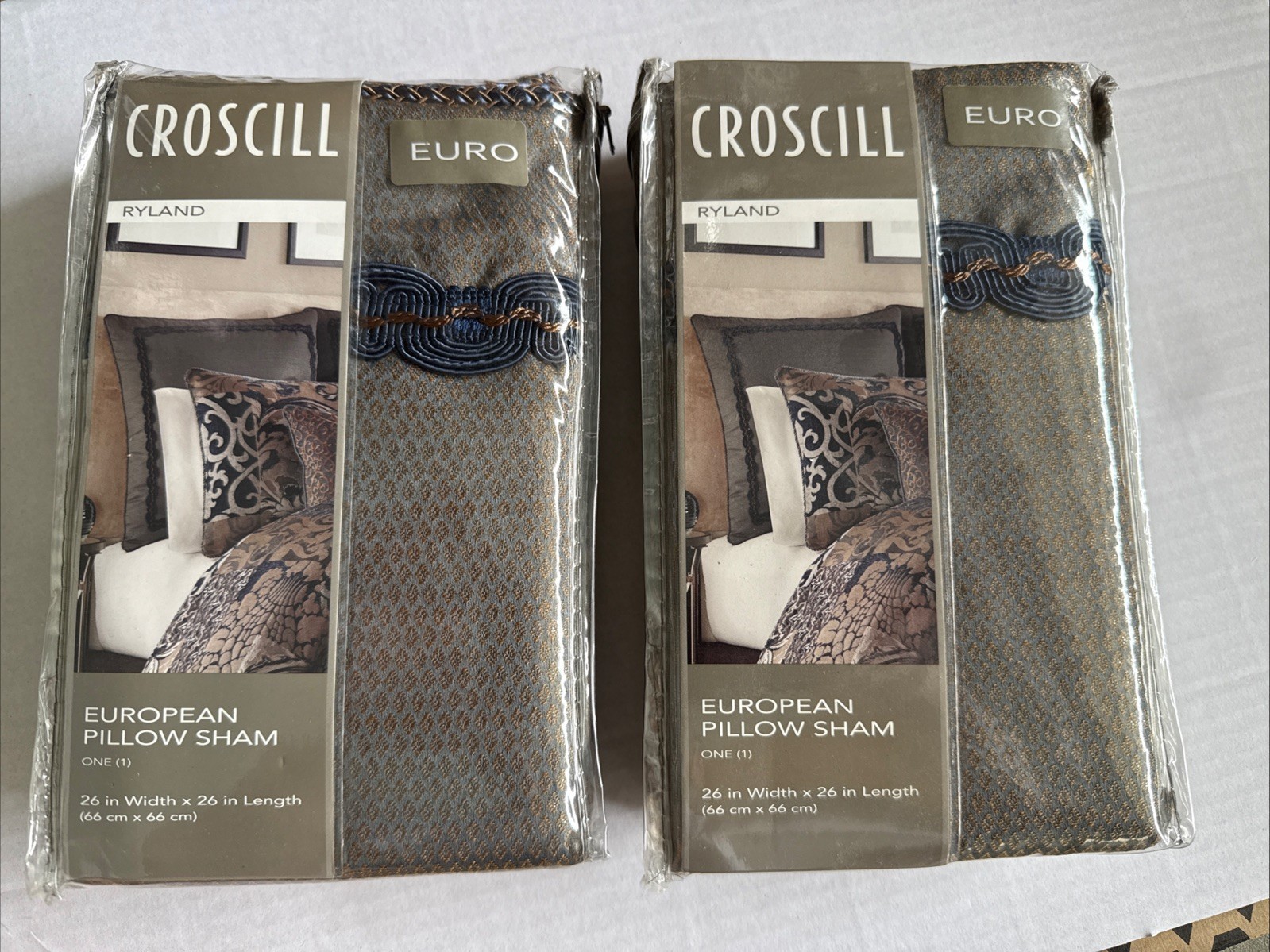 - Set Of 2 Croscill Ryland Blue 100% Polyester European Pillow Shams ~New~