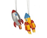 SET OF 2 ROCKET SHIP ORNAMENTS 3" Resin Retro Outer Space Sci Fi Christmas Tree