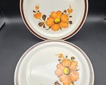 - Set Of 2 VTG 1970s VALENCIA Stoneware Orange Flower Floral Dinner Plates Japan