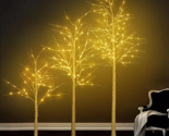 - Set Of 3 Birch Trees with Lights, 2ft 3ft 5ft Pre-lit USB Powered Warm LED