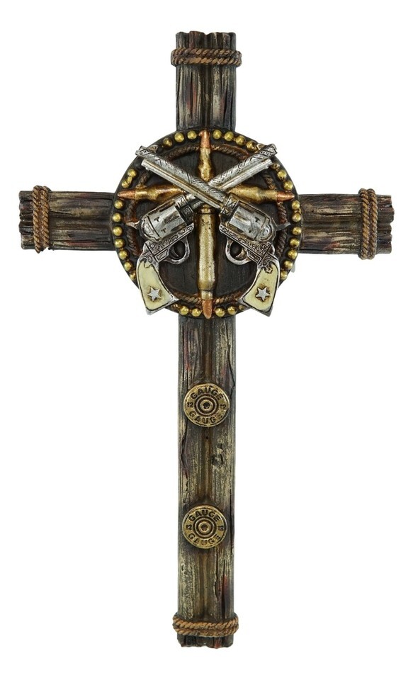 - Set Of 3 Rustic Western Star Horseshoe Cowboy Horse And Pistols Wall Crosses