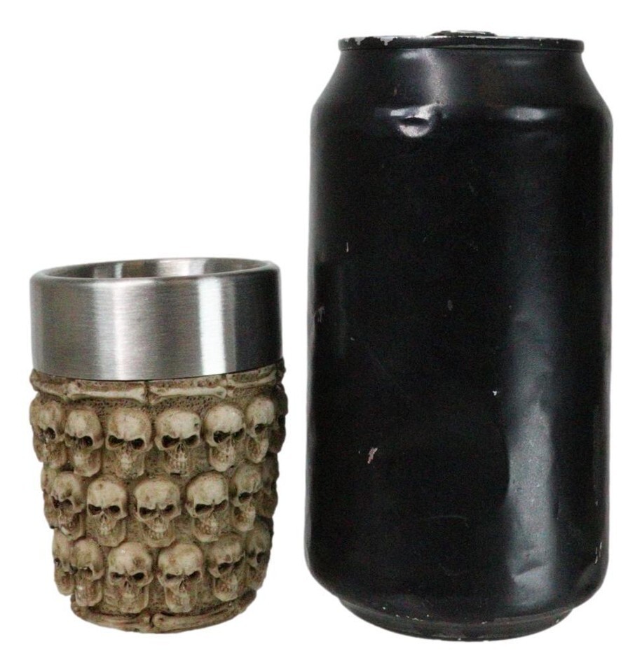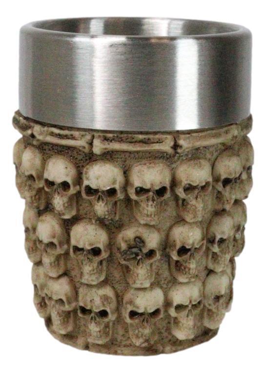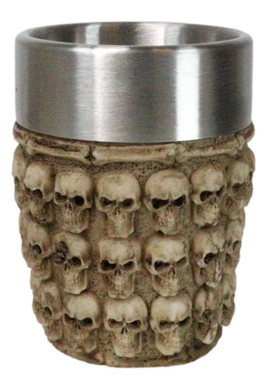 ? What a cool way to serve your mixed alcoholic drinks to your guests!!! Each shot glass is amazingly detailed and will make a centerpiece of any party. It showcases a pile of graveyard skulls all over the surface, bounded by spinal bones at the top and bottom of the shotglass.