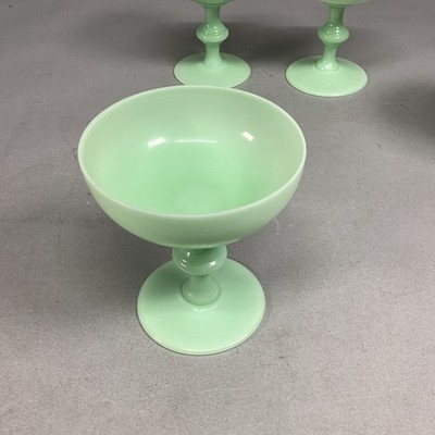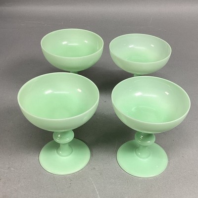 Set Of 4 Green Dessert Sherbet Glasses - 4.25?Hx3.75?D. In good condition. Not uranium glass. These do not glow under black light.