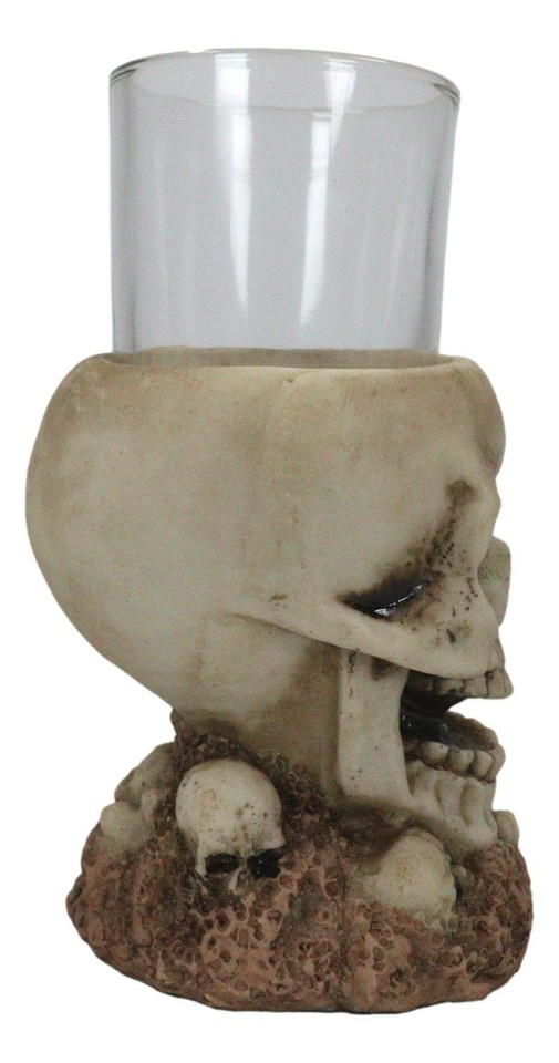 Ebros Grinning Giant Skull With Missing Tooth On Skulls Graveyard Shot Glass Shooter