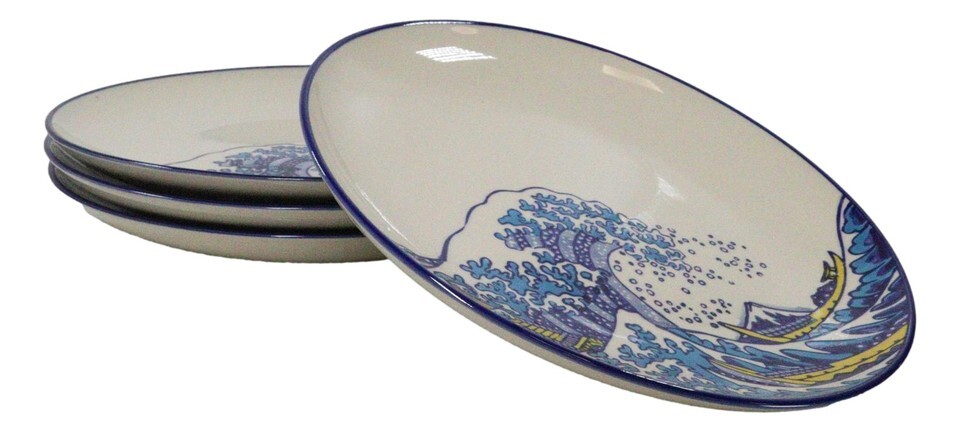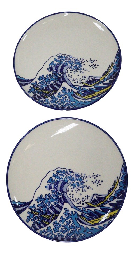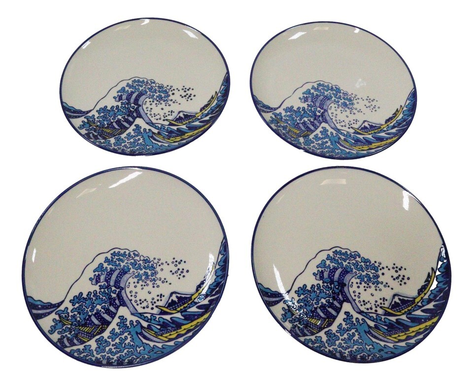 - Set Of 4 Hokusai The Great Wave Of Kanagawa Mount Fuji 11"D Round Dinner Plates