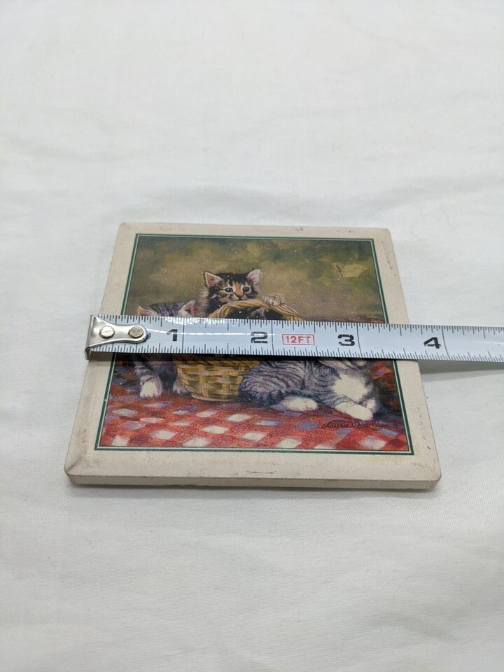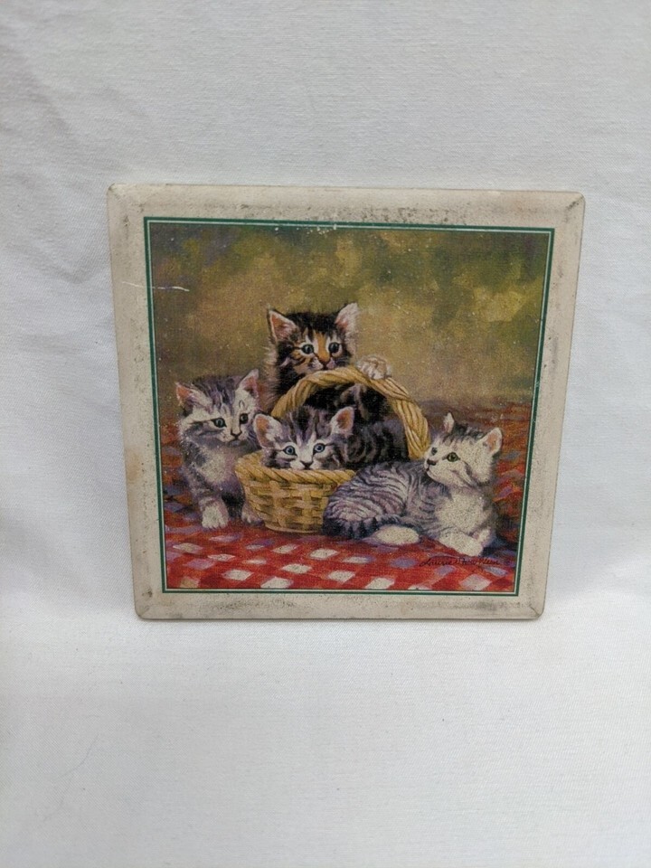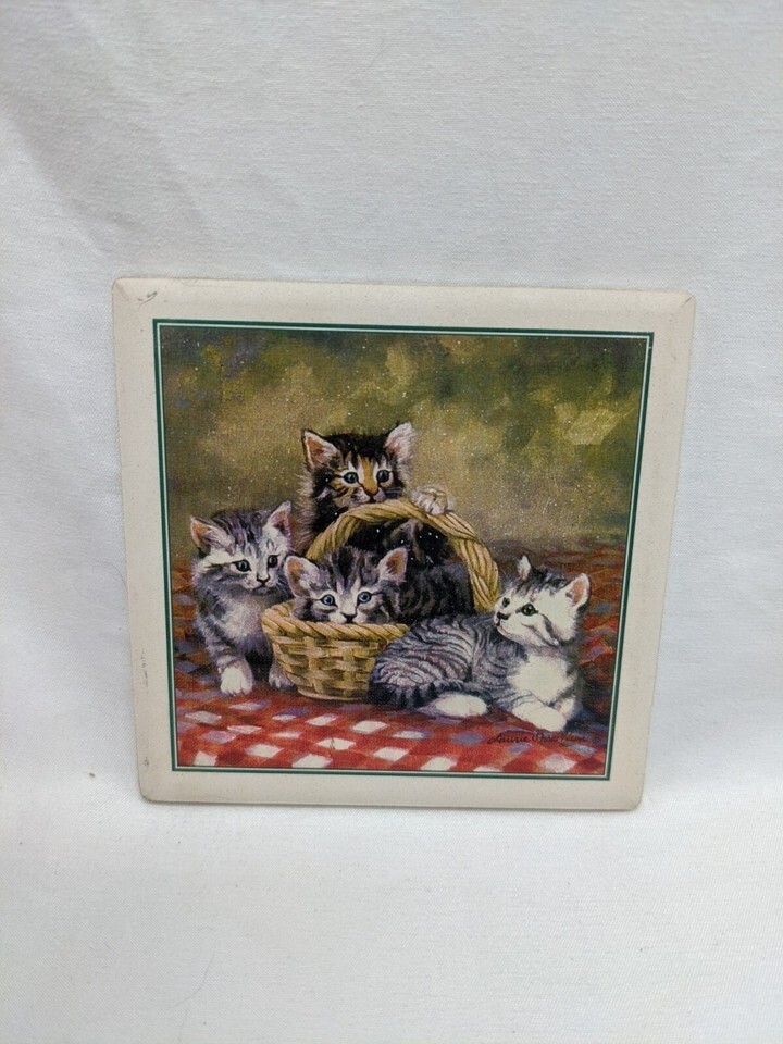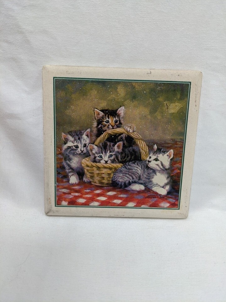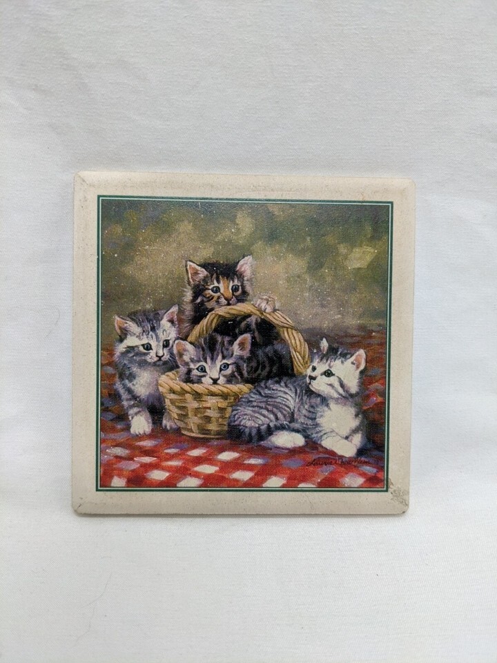 - Set Of (4) Kittens In A Basket Ceramic Coaster Cork Back 3 1/2"