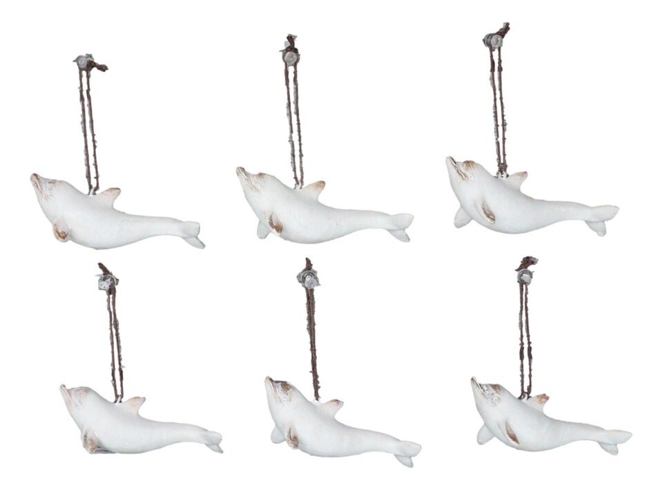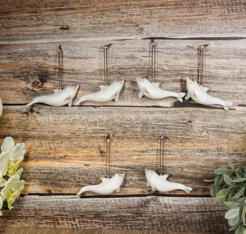 - Set Of 6 Antique White Dolphins Ocean Marine Wall Hanging Decor Tree Ornaments