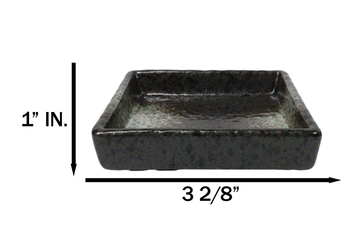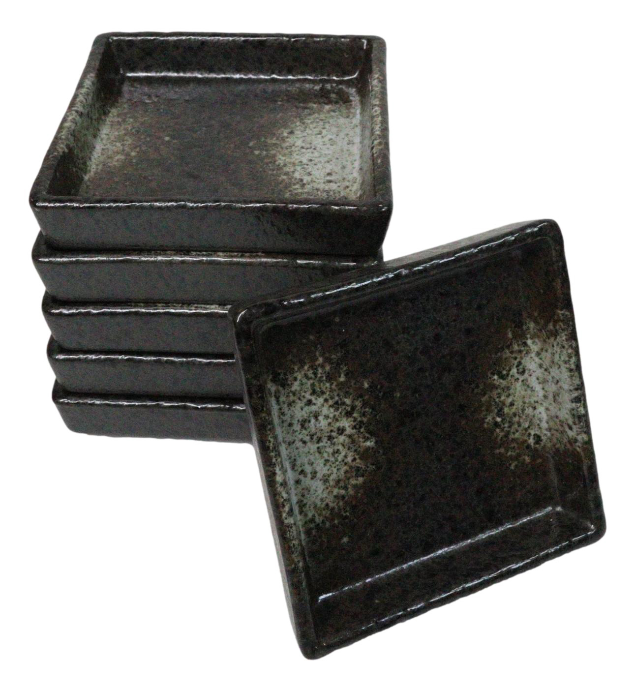 - Set Of 6 Charcoal Grey Tone Hakumu Art Ceramic Square Condiment Sauce Dishes 2oz