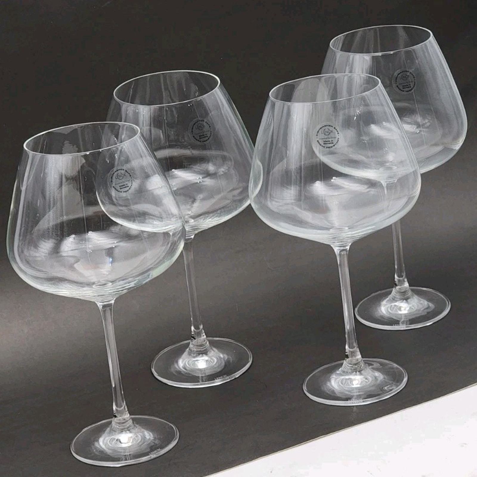 This set of Lenox crystal large burgundy wine glasses, with a capacity of 28 oz each, exudes classic elegance with its Umbria pattern and signature Lenox branding. Made in Slovakia, these wine glasses are perfect for all occasions with a touch of American and European flair. The clear crystal material and elegant glass production style make them a timeless and sophisticated addition to any table setting. Lenox American by Design fine European Stemware.
