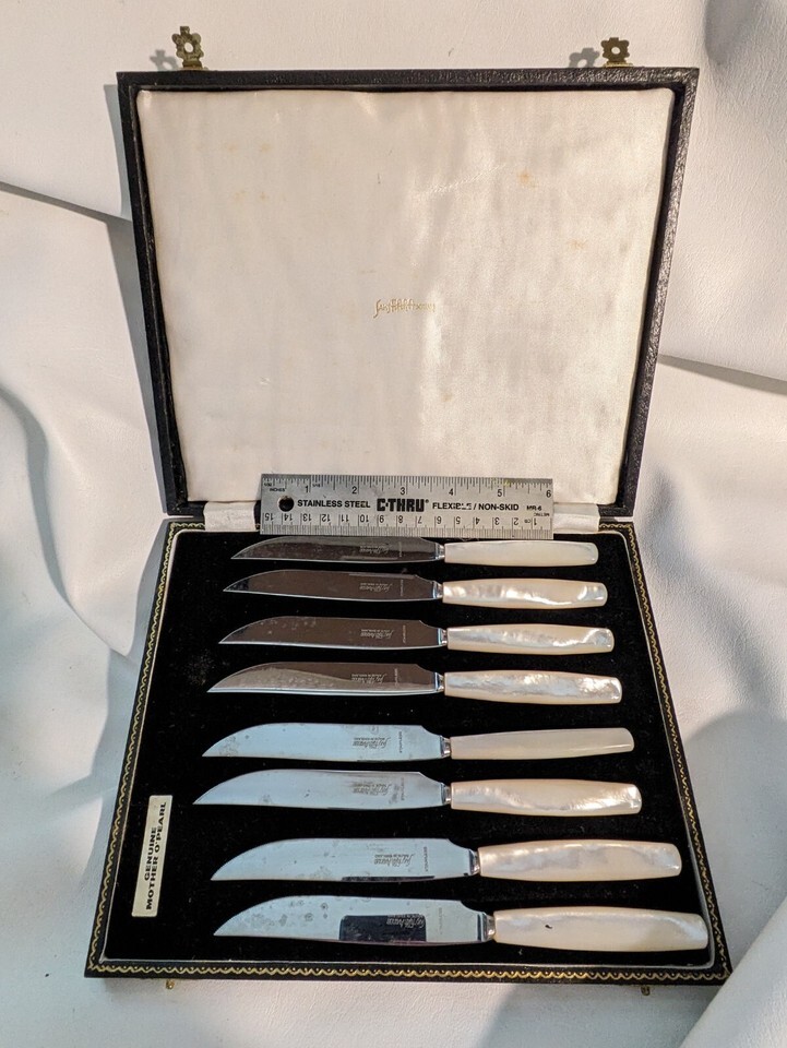 - Set Of Saks Fifth Avenue Fruit Knives Mother Of Pearl Handles Silverware Box