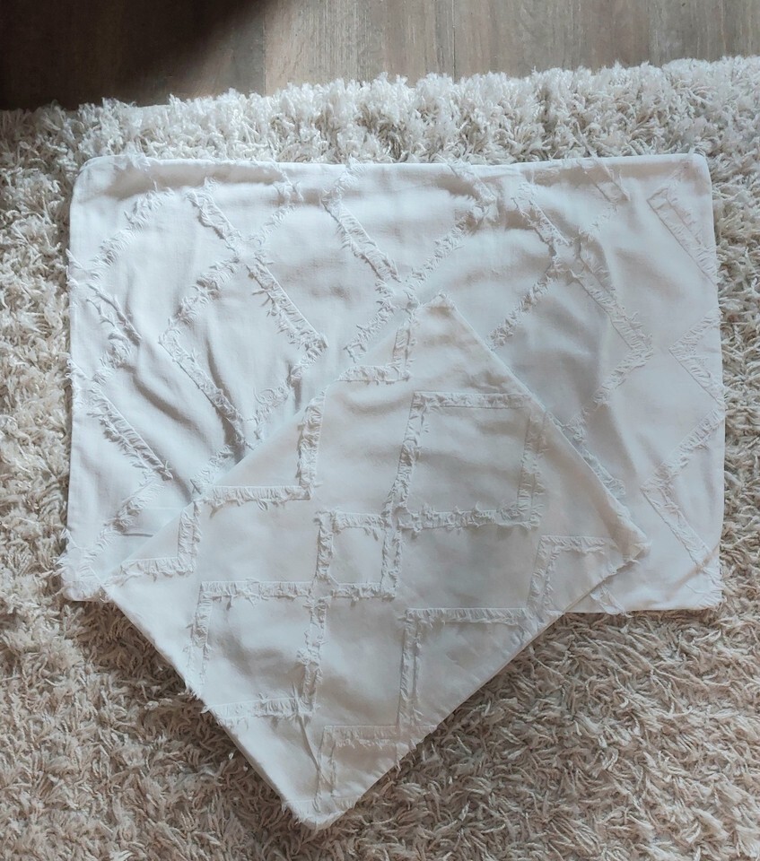 and a tufted ribbon design on the front. About 27? by 18.5?. I had these on my guest