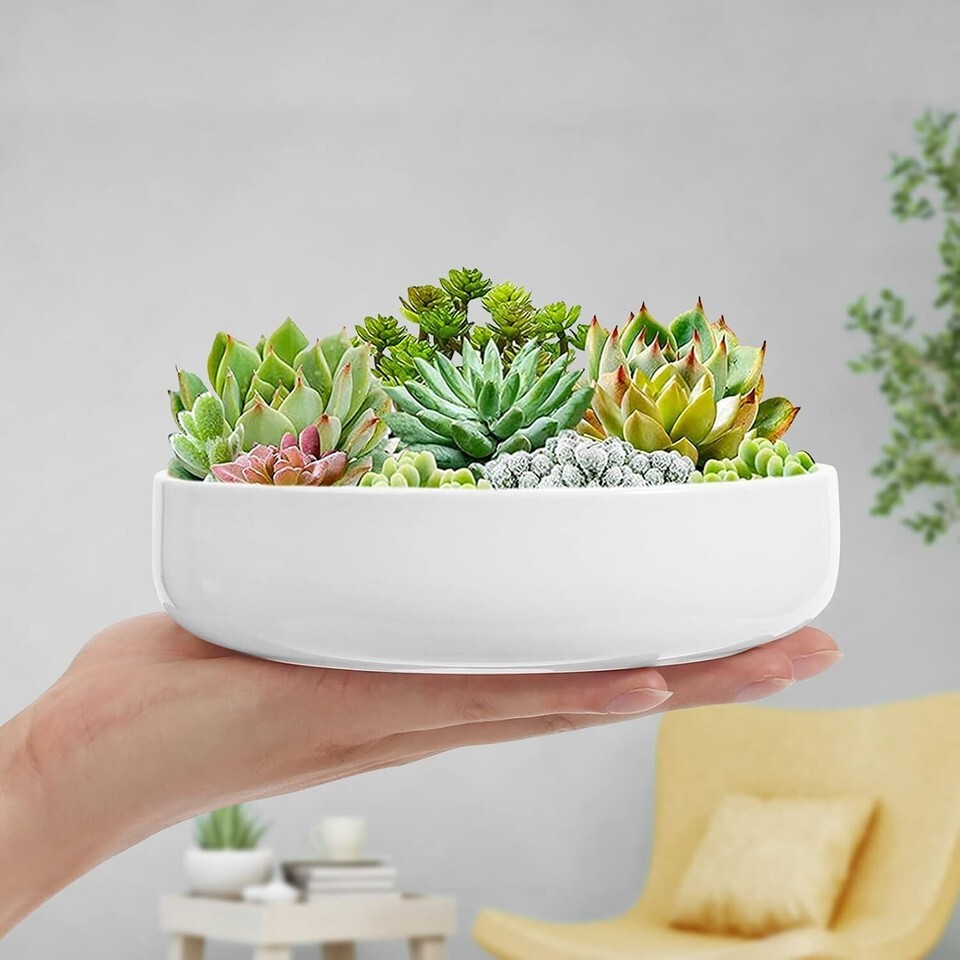 Drainage Hole Design: Each shallow round planter includes a strategically placed drainage hole, promoting healthy growth while adding a fresh, inviting aesthetic to your home.