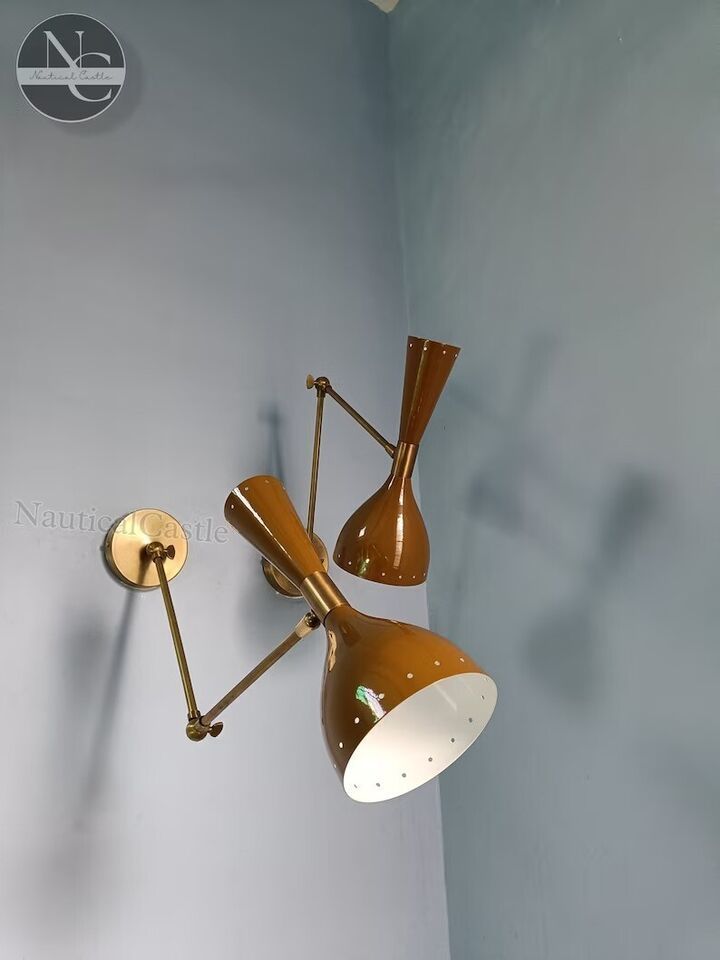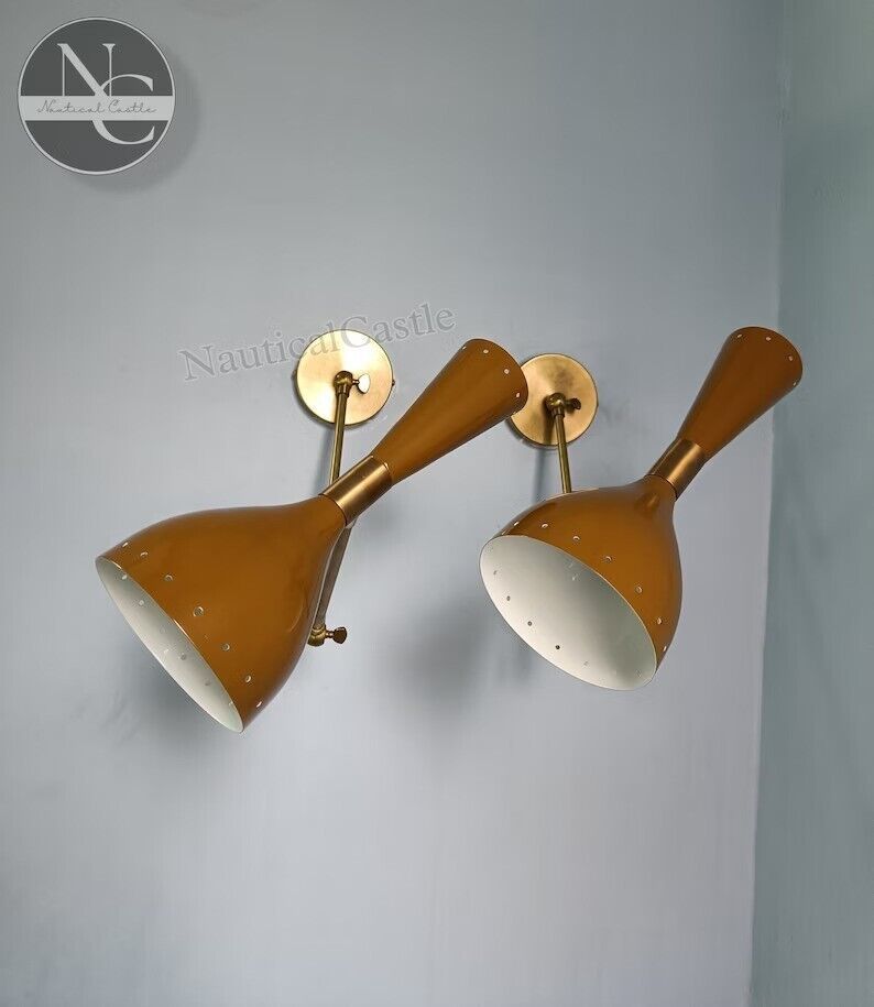 - Set of 2 Brown Wall Sconce Mid Century 1950's Italian Stilnovo Sconce Lighting