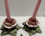 - Set of 2 Capodimonte Matte Finish Ceramic Flower Candle Holders with Candles