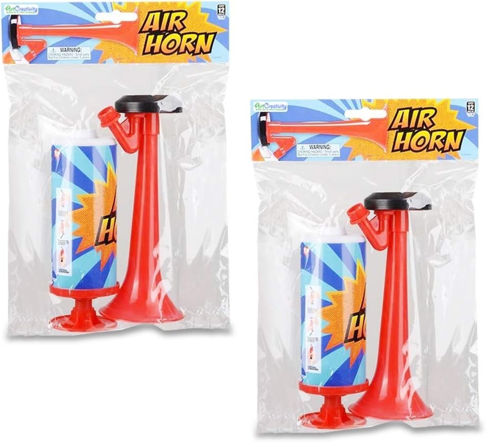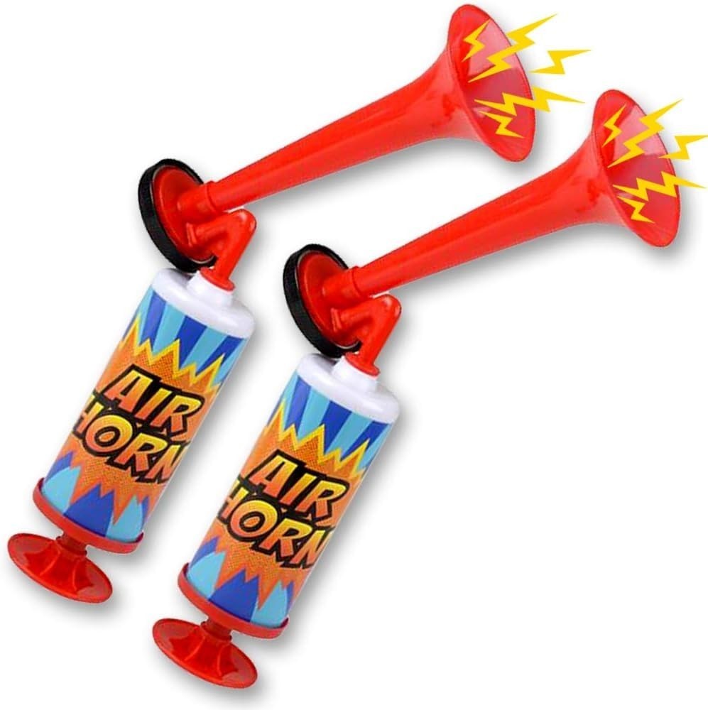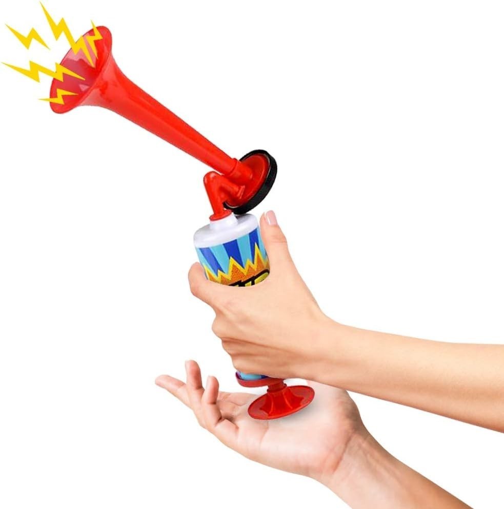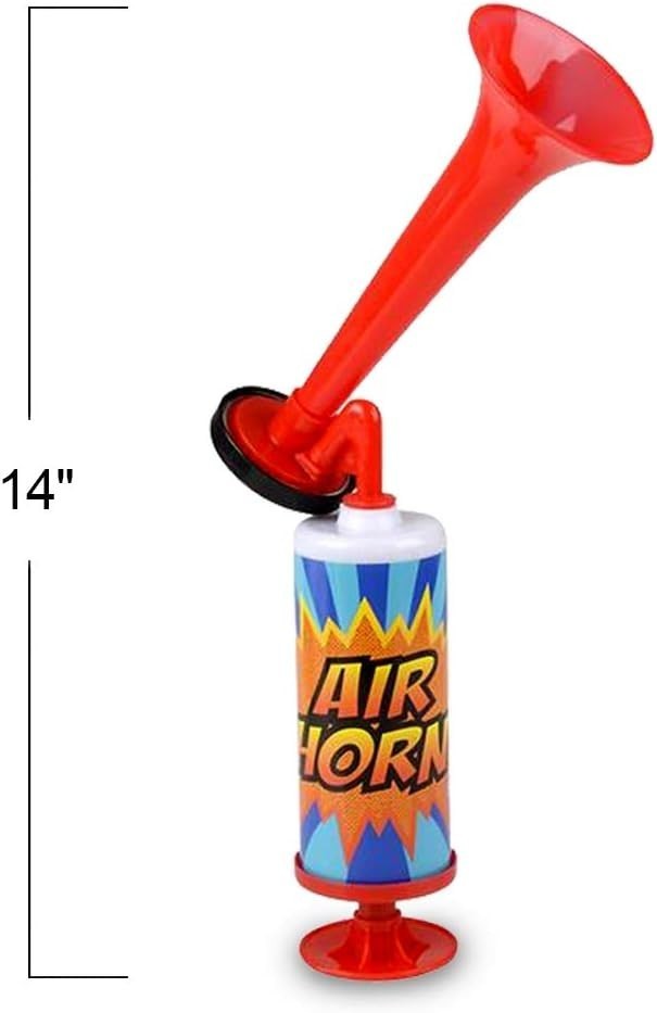 Elevate your celebrations with our 14-inch air horns?perfect for sporting events, parties, pep rallies, or New ?s gatherings. Each set includes 2 vibrant, comic-inspired noise makers designed to grab attention and energize crowds. Easy and fun to operate, simply pump to build pressure and press to produce a powerful, attention-grabbing blast. Suitable for kids 12 and up, these eye-catching horns feature bright red accents and cool graphics, making them an instant hit with kids and teens alike.