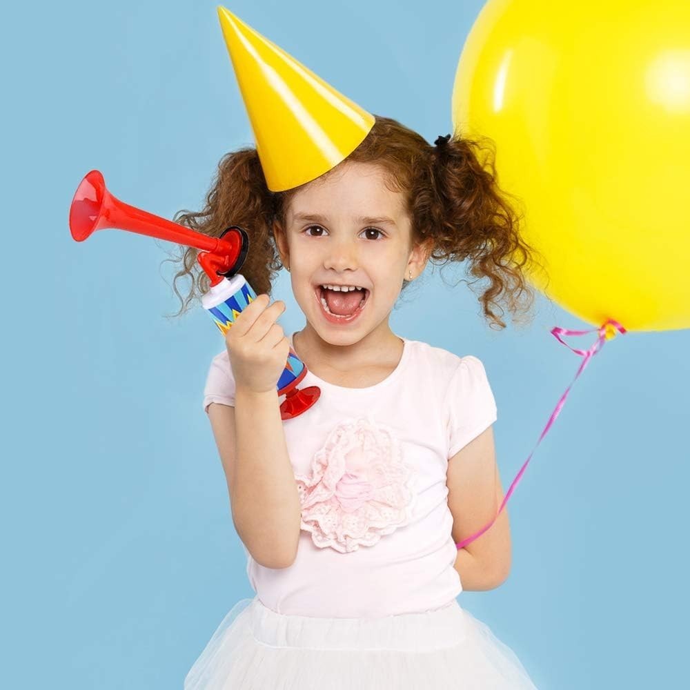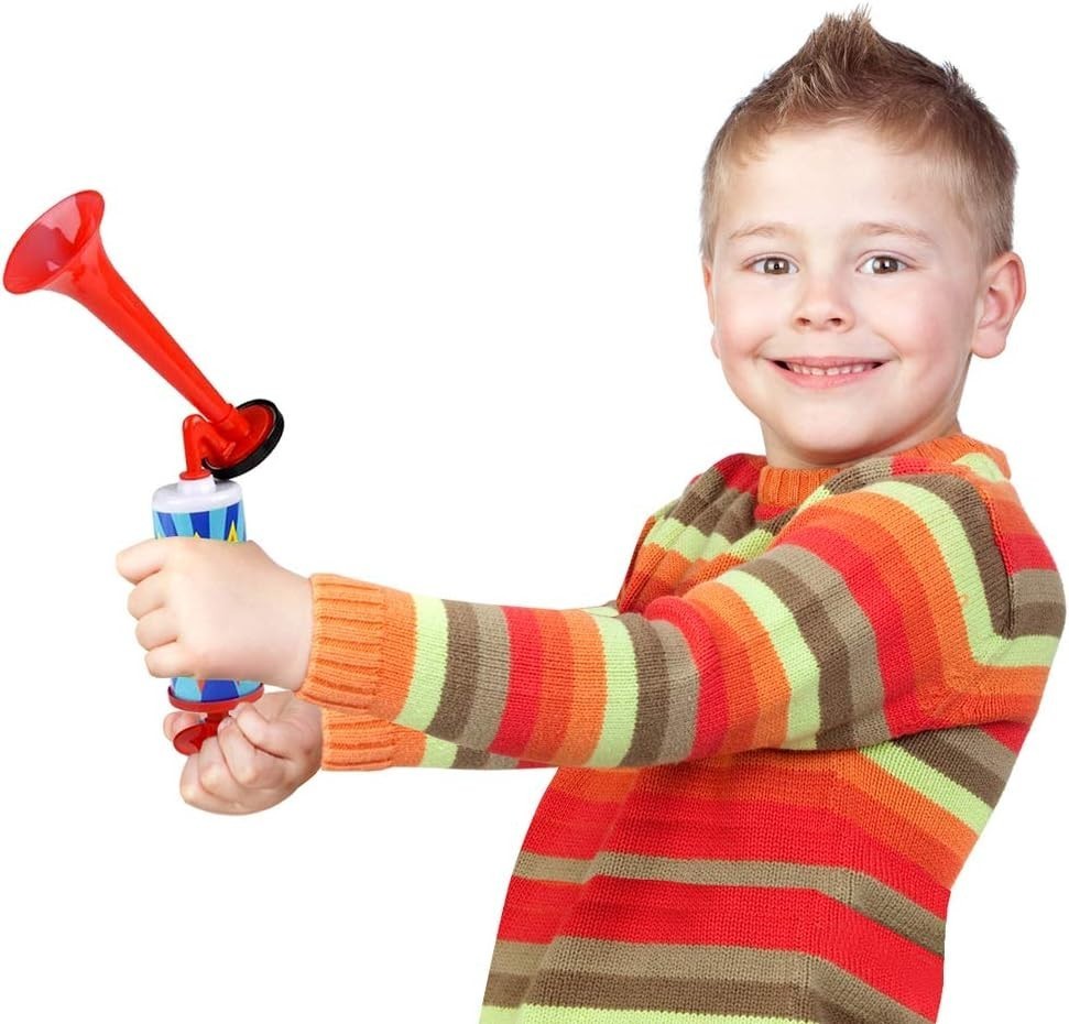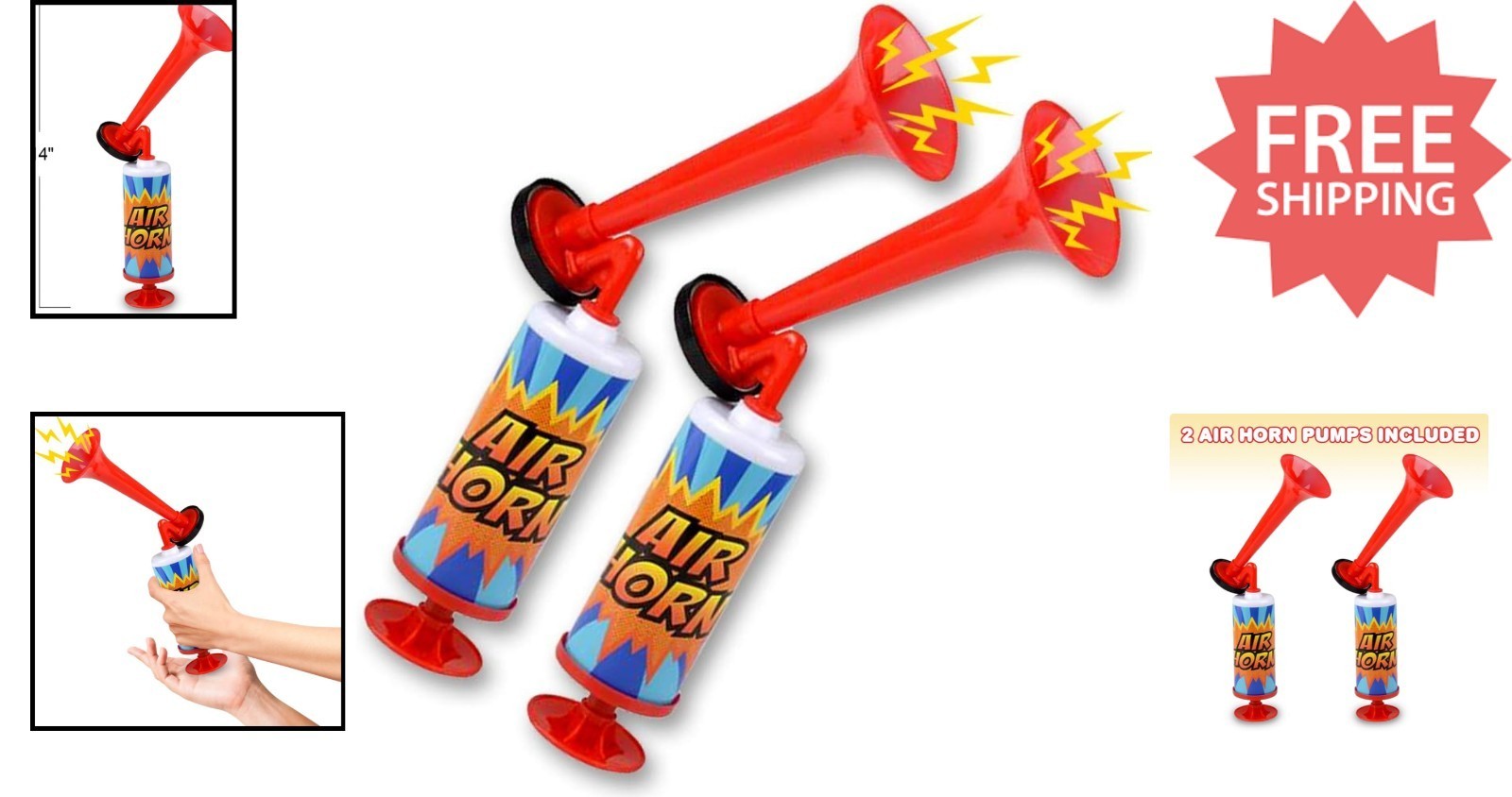 Elevate your celebrations with our 14-inch air horns?perfect for sporting events, parties, pep rallies, or New ?s gatherings. Each set includes 2 vibrant, comic-inspired noise makers designed to grab attention and energize crowds. Easy and fun to operate, simply pump to build pressure and press to produce a powerful, attention-grabbing blast. Suitable for kids 12 and up, these eye-catching horns feature bright red accents and cool graphics, making them an instant hit with kids and teens alike.