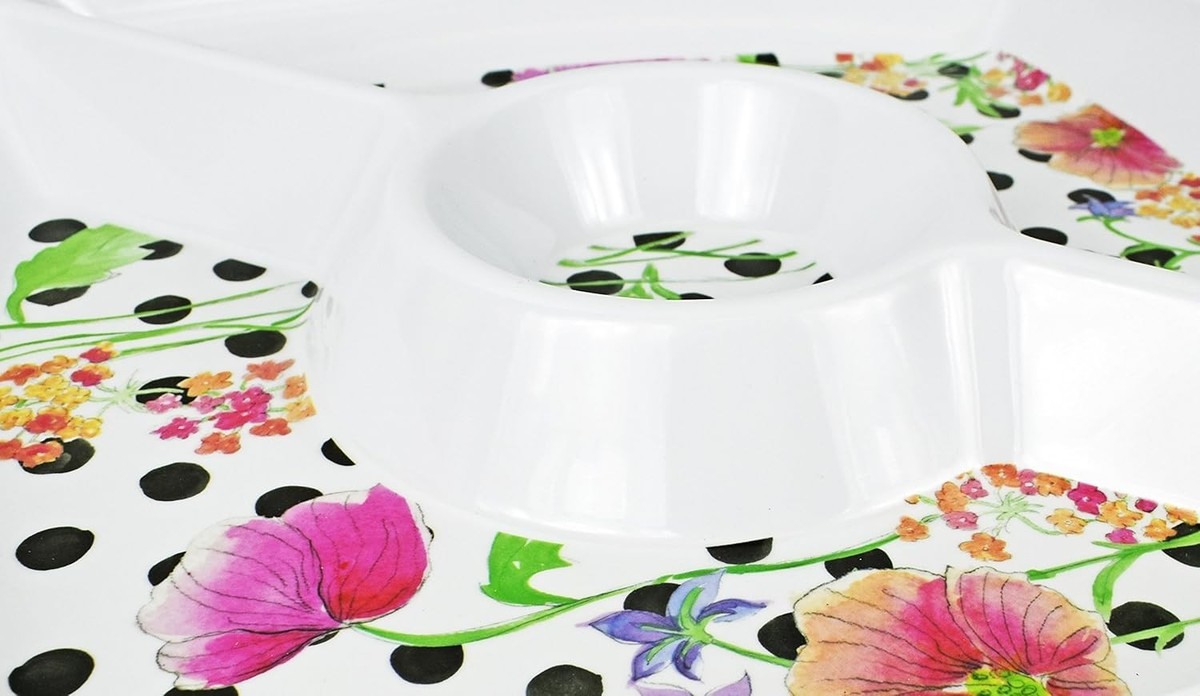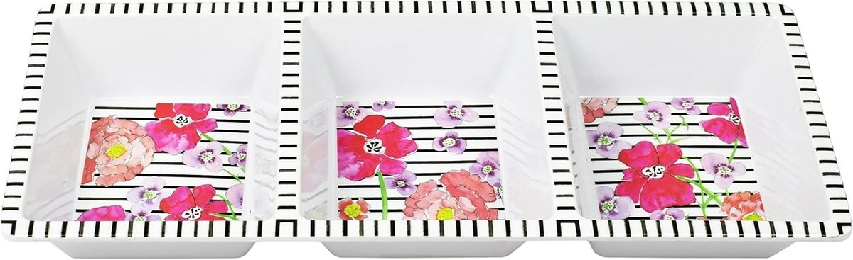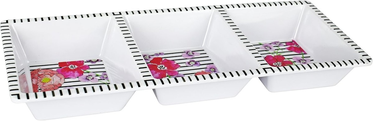 - Set of 2 Home Basics Floral Design Serving Dish Set - 3-section Party Tray