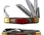 Brand new multipurpose hoof care grooming tool knife. Measures 4" (L) x 1" (W). Tools are made from rust-free stainless steel, inside a brass and wooden casing.