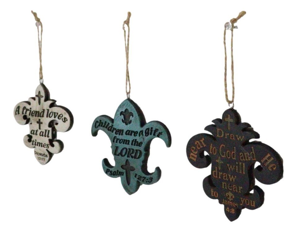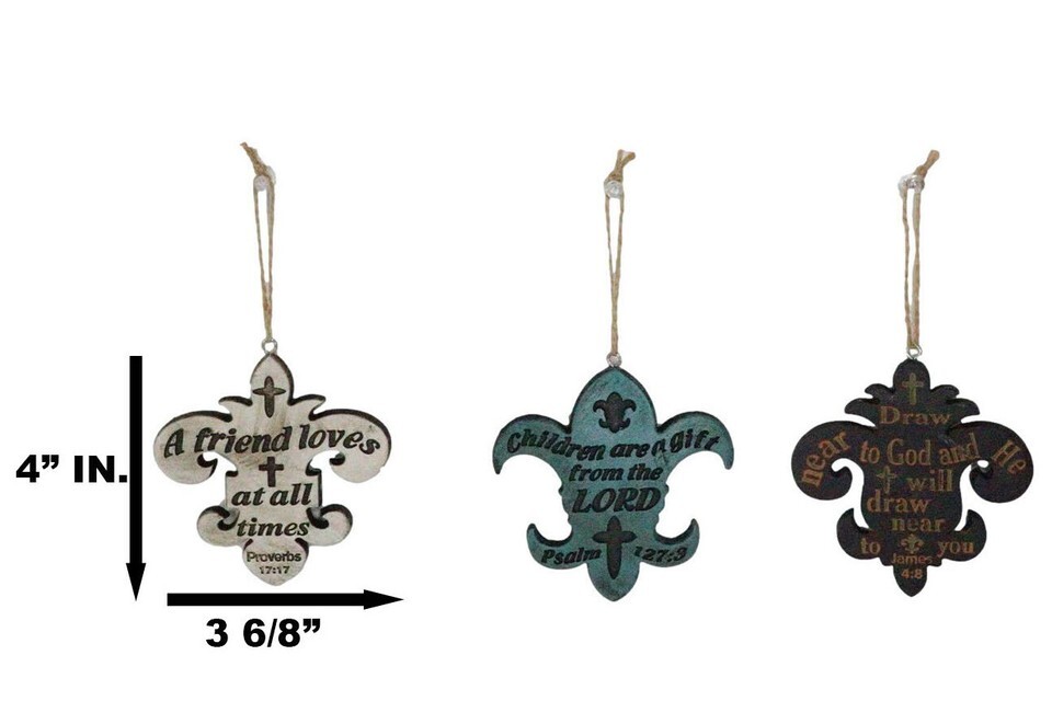 - Set of 3 Bible Scriptures James Proverbs Psalm Fleur De Lis Cutout Ornaments
