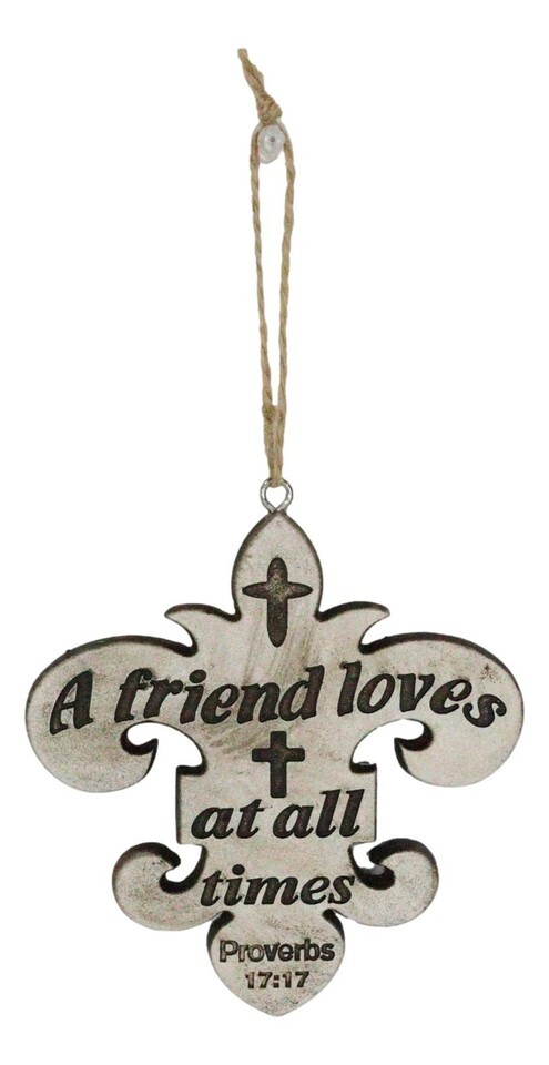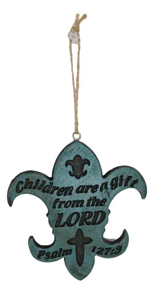 ? Give these lovely Christian art ornaments to yourself or a loved one for any special occasion or holiday, such as New School Year, New Baby, Adoption Celebration, Baby Showers, Mother's Day, Father's Day, Housewarming, Easter, Birthdays, or Christmas! Featuring fleur de lis cutout ornaments, you will find Holy Scriptures carved into the front side of each piece. Taken out of the book of Psalm, Proverbs and James, these verses will encourage and admonish you!