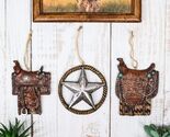 Set of 3 Rustic Western Star Ropes Circle Tooled Leather Horse Saddles Ornaments