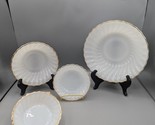 - Set of 4 Anchor Hocking Fire king White Milk Glass, Gold Trim, Bowls